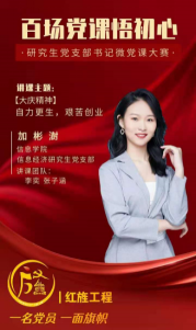 为迎接中国共产党百年华诞,深入学习贯彻习近平总书记在党史学习教育动员大会上的重要讲话精神,伟德国际1946bv积极响应学校号召,组织信息经济研究生党支部、信息管理与信息安全研究生党支部、电子信息研究生党支部参与“百场党课悟初心”研究生党支部书记微党课大赛微视频录制,引领广大研究生党员在学史过程中明史明志,致知于行。经过激烈的角逐,我院信息经济研究生党支部加彬澍同志的微党课从全校一百余个竞赛视频中脱颖而出进入总决赛,并获得了二等奖。