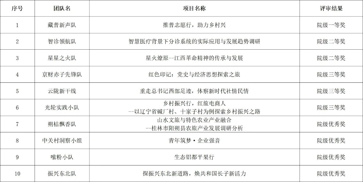在答辩评审会后,经过伟德国际1946bv团委副书记贺译民老师和信息管理系副主任李惠老师的评审,共有六支队伍获社会实践优秀团队推选资格,马艺萌同学获社会实践优秀个人推选资格,公示结果如下:
