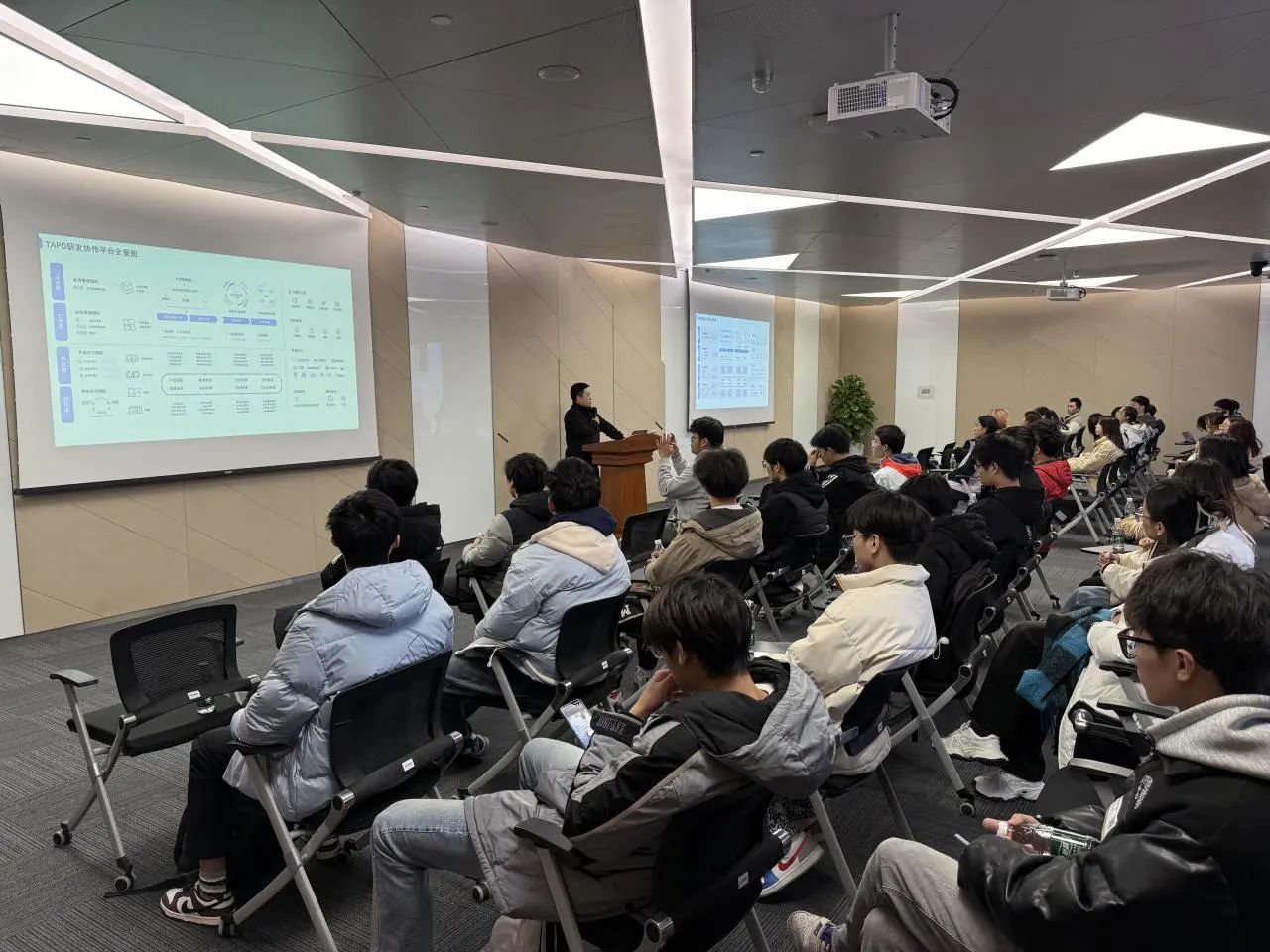 在专题讲座环节,TAPD高级产品经理李松延详细介绍了腾讯研发协作管理工具——TAPD项目,介绍了该工具的应用场景和功能优势;腾讯云高等教育行业商务经理谭贵岩深入讲解了腾讯在AI技术赋能高等教育方面的实践与探索,并着重介绍了AI助手在学习中的应用、AI人才培养模式等内容,同时就老师和同学们提出的相关问题进行深入解答。
