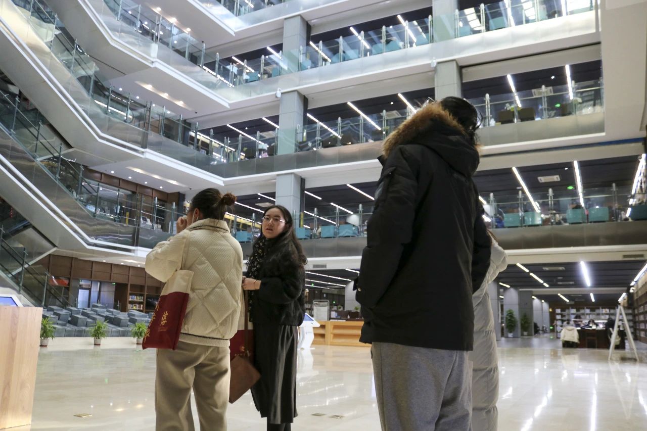踏入图书馆,校友们瞬间被那静谧且充满书香气息的氛围包裹。四周,书架如林,各类书籍琳琅满目,似知识的宝库静静敞开怀抱;整齐划一的自习桌椅摆放有序,明亮的灯光柔和地洒下,映照着桌面的绿植,更添几分雅致。一位校友情不自禁驻足,眼神中流露出对过去刻苦求学时光的追忆。他们缓缓踱步,手指轻轻滑过书架,仿佛在触摸那些年奋斗的痕迹,曾经埋首书海、奋笔疾书的旧影,如蒙太奇般在眼前一一浮现。