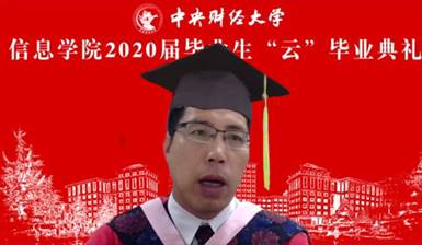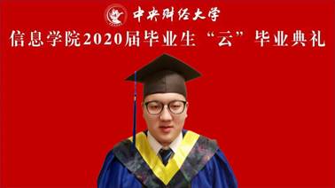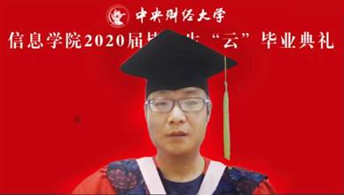2020届研究生毕业生代表焦宇航同学回忆了自己从收到录取通知书到顺利毕业两年来一点一滴的心路历程,并表达了对同学、老师及家长的感谢。随着信息技术的发展,信院的影响力正逐步扩大,作为信院进步发展的见证者,焦宇航同学感到无比自豪。他希望所有同学面对纷繁复杂的未来世界,都能够认真思考“我要成为一个怎样的中财人”,不负师兄师姐,老师同学重托,用实际行动诠释“龙马担乾坤”的中财精神。最后,焦宇航同学祝愿所有毕业生们前程大好,一展宏图。
