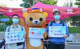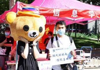9月13日与16日全天,伟德国际1946bv2020级迎新工作均有序进行。新生们经过校门口严格的消毒流程进入校园,由路口的引导员引导至乾坤路旁的伟德国际1946bv报到处。工作人员依次审核新生递交的报到材料,快速高效地为新生办理报到手续。新生们还可以手持富有伟德国际1946bv特色的标语牌,和憨态可掬的信息熊人偶留念打卡,将美好瞬间永留。