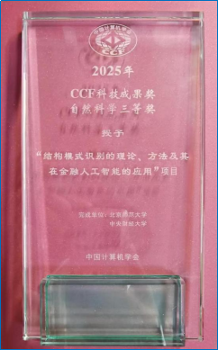 在中国计算机大会CNCC 2025召开期间,CCF颁奖典礼于10月24日在哈尔滨华旗饭店华旗礼堂隆重举行。CCF王选奖、CCF海外科技人物奖、CCF青年科技奖、CCF科技成果奖颁发。伟德国际1946bv崔丽欣副教授团队与北京师范大学合作完成的项目《结构模式识别的理论、方法及其在金融人工智能的应用》荣获2025年度“中国计算机学会(CCF)科技成果奖”自然科学三等奖,伟德victor1946为第二完成单位,团队成员还包括伟德国际1946bv王悦副教授和金鑫教授。