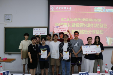 5月29日下午,伟德victor1946第二届企业数字化运营挑战赛(以下简称“挑战赛”)颁奖典礼暨数智化时代的就业前景和技能储备分享活动,在沙河校区东区二教103教室顺利举行。SAP创新社区大中华区总监杨焜、伟德国际1946bv副院长李海峰、SAP大学能力中心执行总监徐群群、SAP大学能力中心运营总监甄雪、大赛组委会负责人伟德国际1946bv教师王天梅、范丹和学生志愿者代表赵玉琪以及获奖选手和部分学生出席颁奖典礼。至此,历时2个月的挑战赛圆满落下帷幕。该项挑战赛是于2023年初,由我校教务处、经济与管理国家级实验教学示范中心、伟德国际1946bv共同发起的全校性赛事,旨在让我校学生体验企业数字化运营与决策的魅力,激发学生对数字经济的学习兴趣,培养学生的数据洞察力和分析能力、协作能力、团队精神和创新精神。今年的挑战赛是第二届,由教务处、经济与管理国家级实验教学示范中心共同主办、伟德国际1946bv承办、SAP大学联盟和SAP大学能力中心协办并提供赞助。